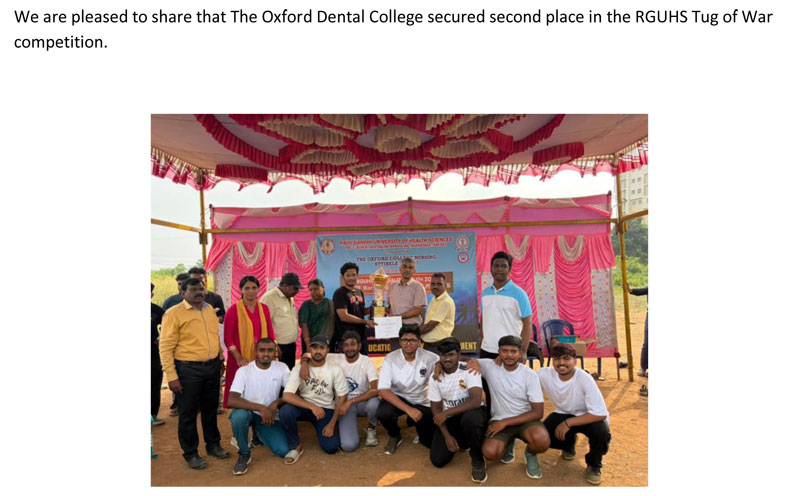 In the Orthodontist premier league 3 2019(davangere) conducted by the Bangalore Orthodontic Study Group, The Oxford Orthodons achieved the 2nd Runners position out of the 20 teams participated . Along with Best batsman(male) and Best batsman (female) Cup.